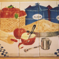 Custom tile murals can depict any subject matter the client choses to create a unique theme in their kitchen. Sharon Harrison will explore ideas and create sketches working with ideas and pictures the client provides. The tiles are painted with ceramic and/or porcelain glazes and then fired in her kiln for permanence and durability. All tiles are numbered and an installation guide and sketch will be provided for aiding the tile installer, (Sharon is willing to be on site to assist if the client so wishes).