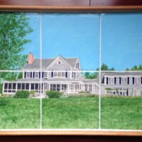 Sharrison Studios, nestled in the heart of Waterford, Maine, is renowned for their hand-painted tiles. They create tile works of art that can be inserted into wooden trays, mounted in kitchens or bathrooms or framed for hanging on the wall. Their tiles or platters depict portraits of houses, creative elements of wedding invitations and copies of nautical lake maps or unique areas such as ski slopes or islands. They use ceramic tiles and paint each tile using ceramic glazes and/or porcelain glazes. The tiles are then filed in their kiln for permanence and durability.